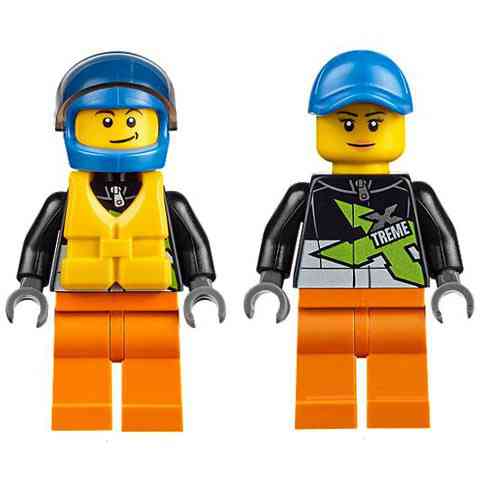 - tartalmazza a 2 motorcsónak versenyző minifigurát a kiegészítőikkel