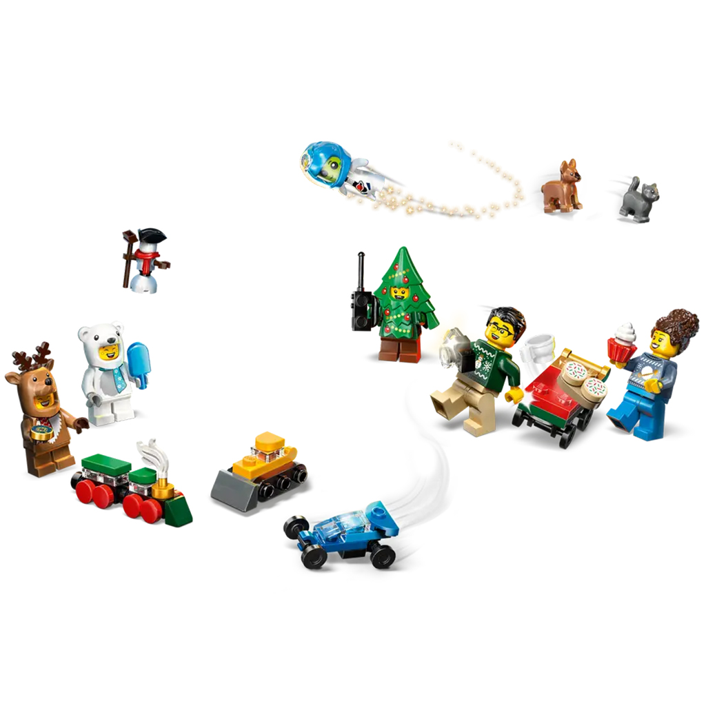 • Adventi naptár szett 24 meglepetéssel – Mikulás és Mikulásné minifigurákat, jegesmedve-, rénszarvas- és karácsonyfa- jelmezeket viselő figurákat, valamint miniépítményeket és vidám gyűjthető tárgyakat tartalmaz