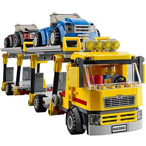 Szállítsd el a csillogó új autókat Lego City kereskedőjéhez, a bámulatos Autószállítón! Kapcsold le az utánfutót, engedd le a rámpát és gurítsd le a menő sportkocsikat. Miután a vásárló aláírta a csíptetős írólapot, emeld vissza a rámpákat a helyükre, akaszd be az utánfutót és ugorj vissza a vezetőfülkébe, hogy újabb autókat hozz a lelkes vásárlóknak!