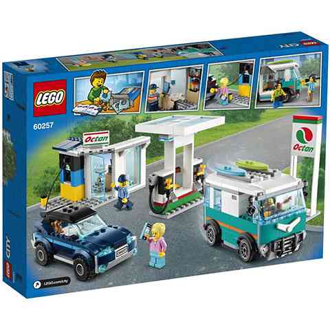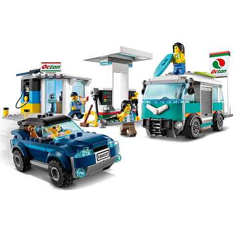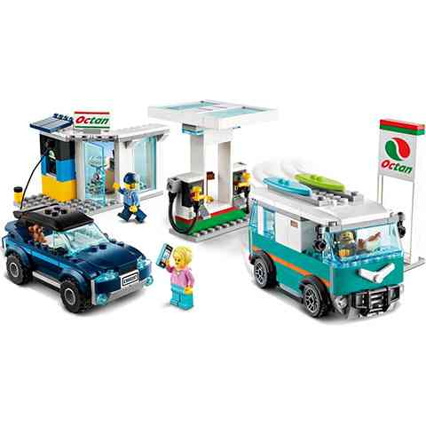 A játékautó rajongók imádni fogják ezt a LEGO City Benzinkút játékkészletet, mely tartalmaz egy elektromos és benzinmotoros járművekhez készült benzinkutat. A gyerekek csatlakoztathatják a SUV autót a feltöltésre Octan E társaságában, megtankolhatják a lakóautót a benzinkúton és a boltba is ellátogathatnak. A benzinkútkezelő, a sofőr és két szörfös minifigurával, valamint egy kis kutya figurával a gyermekeknek végtelen, önálló játékban lesz részük. A LEGO City készletekkel a gyermekek elmerülhetnek a végtelen kalandokban és az akciódús helyzetekben, melyek valószerű helyzetekre épülnek. A funkciókkal teli épületek, a valósághű járművek és a szórakoztató szereplők széles választékával a gyermekek egy olyan világba csöppennek, ahol igazán kivirágozhat kreativitásuk és képzelőerejük.