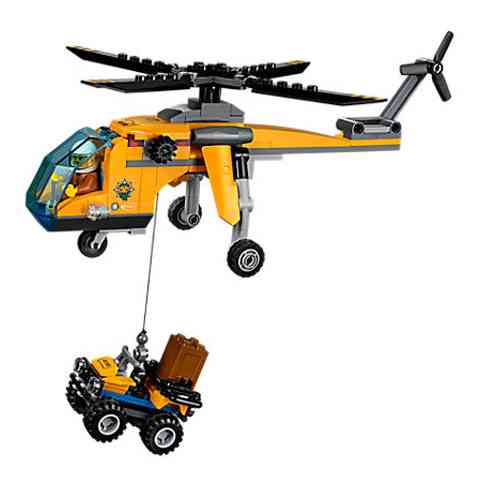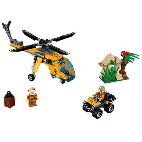 Lego City dzsungeledben szorgoskodó felfedezőknek és a turistáknak fenntartott táborhelyeknek szükségük van utánpótlásra, melyet a levegőben a legkönnyebb odajuttatni. A teherszállító helikopter segítségével könnyedén viheted a csomagot oda, ahol a legnagyobb szükség van rá. A szettben egy négykerekű quadot is találhatsz amellyel a nehéz terepen is közlekedhetsz. Akaszd a helikopter csörlőjére és vidd a quadot a célterületre. A helikopter segítségével folyamatos utánpótlásokkal segítheted a dzsungel mélyén dolgozó felfedezők munkáját, kimentheted a bajbajutottakat az erdőből.