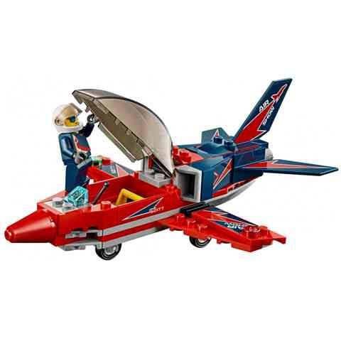 Hatalmas tömeg gyűlt össze a LEGO város szomszédságában található sportrepülőtéren, hiszen ma lesz a látványos légi bemutató. Apiros színű kis sugárhajtású jet már fel van készítve és megtankolva várja, hogy a levegőbe emelkedj vele. Vedd fel a sisakot, és pattan a pilótafülkébe, és máris kezdődhet a bemutató. Tolóerőt maximumra, és jöhetnek a hajmeresztő spirálok, bukfencek és a vérfagyasztó dugóhúzó, amit természetesen csak az utolsó pillanatban kell egyenesbe hozni.