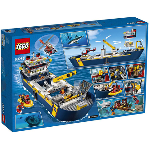 Izgalmas kalandok a láthatáron a hatalmas Óceánkutató hajó fedélzetén. Ez a szuper hosszú hajó nem csak úszik a vízen, de minden megtalálható rajta, amire a gyermekeknek szükségük van a végtelen óceán kutatásához. Van itt cápaketrec, működő daru, kutató tengeralattjáró, helikopter és még egy kalózhajó roncsa is rejtett kincsekkel! De a készlet tartalmaz nyolc kutató minifigurát is, köztük a LEGO City TV szereplőjével, Harl Hubbs-szal. Ehhez a játékkészlethez egy egyszerű építési útmutatót és Instructions PLUS is tartozik – ez része az ingyenes LEGO Építési útmutató nevű okostelefonokra és táblagépekre készített alkalmazásnak. Ez a közelítő és forgó képet megjelenítő eszközzel ellátott, interaktív építési útmutató egy szempillantás alatt építőmestereket varázsol a kezdő LEGO építőkből! A funkciókban gazdag épületek, a valósághű járművek és a mókás karakterek révén az Óceán-játékkészleteink a tenger alatti világ izgalmas kutatását és kalandjait tárják fel a kezdő kutatók előtt.