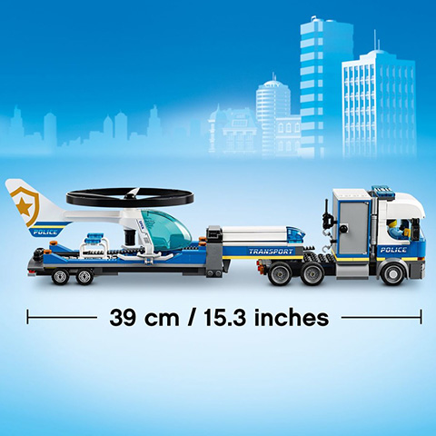 Az akciójátékok és a LEGO építőelemek rajongói számára, ez a fantasztikus Rendőrségi helikopteres szállítás építőkészlet tartalmaz egy repülő helikoptert, amit egy kioldózsinórral küldhetünk a magasba. A fiatal bűnüldözőknek rengeteg mókában lesz részük, miközben segítenek Rooky Partnur rendőrtisztnek rács mögé juttatni a hírhedt bűnözőt, Frankie Lupellit. Ez az izgalmas készlet tartalmaz egy rendőrségi helikopter szállítófurgont, egy motorkerékpárt, egy mobil rendőrségi cellát és a bűnözők ATV-jét. Az okostelefonokon és tableteken elérhető, ingyenes LEGO Life alkalmazás részeként a gyermekek az Instructions PLUS felülethez is hozzáférhetnek, egy interaktív építési útmutatóhoz, mellyel a LEGO építés gyerekjáték lesz! A LEGO City készletekkel a gyermekek elmerülhetnek a végtelen kalandokban és az akciódús helyzetekben, melyek valószerű helyzetekre épülnek.