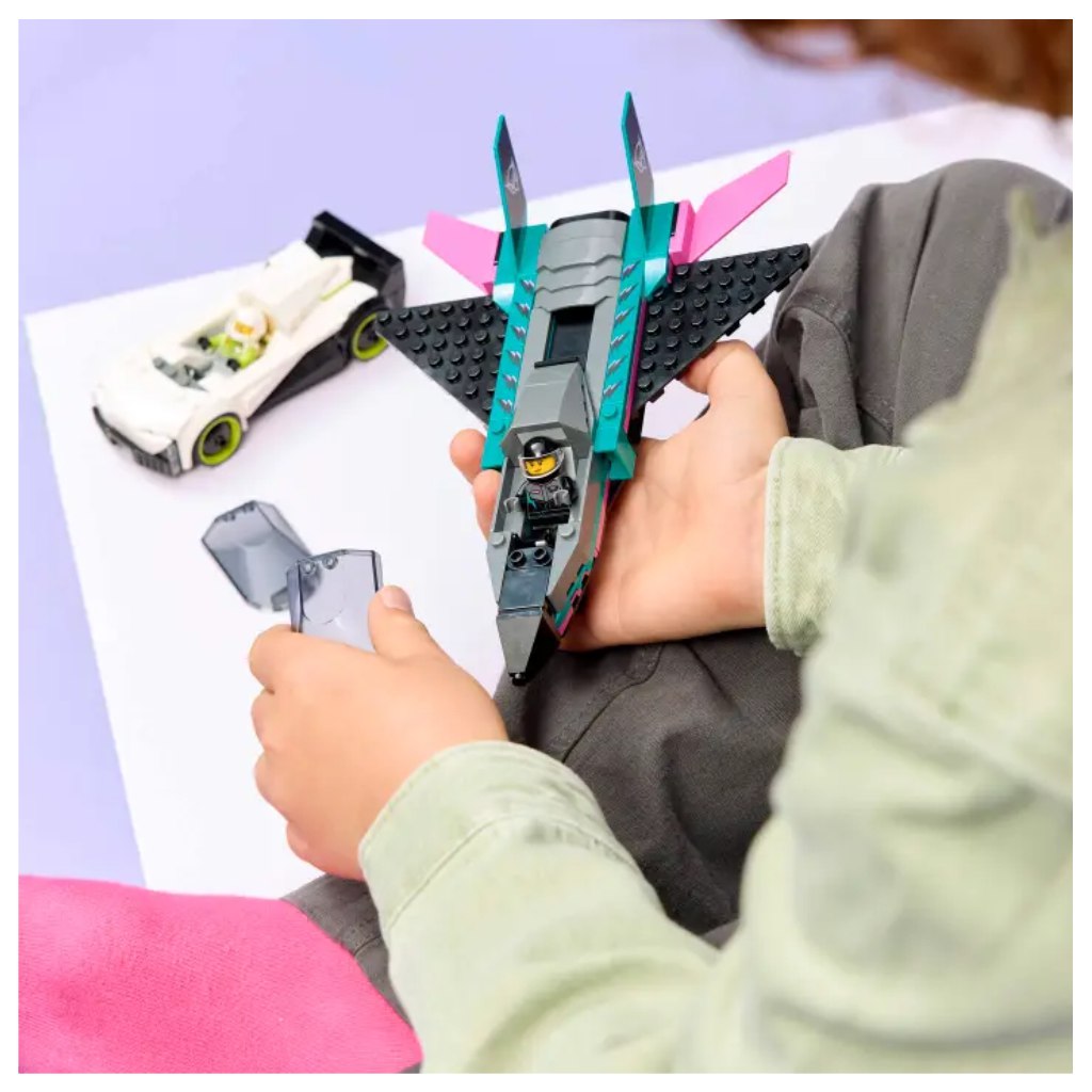 Ez a kettős LEGO® City Repülő vs. autó (60489) járműjáték-készlet egy karcsú szuperautót és egy szuperszonikus repülőgépet tartalmaz a fantáziadús versenyekért. A játék repülőgép hátsó szárnyakkal, függőleges ikeruszonyokkal és stabilizátorokkal rendelkezik. A gyerekek egy kart elmozdítva bekapcsolhatják a sugárhajtású repülőgép utánégetőit, és kinyithatják a szuperautó pilótafülkéjét, hogy megnézhessék a részletesen kidolgozott belső teret, amelyben versenyzőülés is található. Egyszerűen csak add hozzá a pilóta és a versenyző minifigurákat, és órákon át élvezheted a látványos versenyeket. Tegyél minden napot különlegessé ezzel a repülőgép- és autóépítő-készlettel – remek ajándék 6 éves fiúknak, lányoknak és azoknak a gyerekeknek, akik szeretik a versenyautókat és a repülőgépmodelleket. Egészítsd ki ezt a készletet a LEGO City kínálatának többi (külön kapható) készletével a még több városi akcióért! Tedd még szórakoztatóbbá ezt a LEGO járművek sportautó és sugárhajtású repülőgépjátékot a LEGO Builder appal, amelyben a gyerekek felnagyíthatják és elforgathatják a modelleket 3D-ben, valamint nyomon követhetik az építés előrehaladását. A készlet 259 elemet tartalmaz.