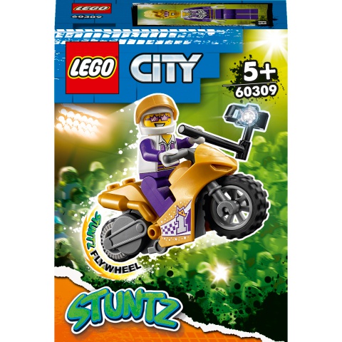 • A gyermekek képzelete egész biztosan szárnyra kap a LEGO® City Selfie kaszkadőr motorkerékpár (60309) játékkészlettel, ami tartalmaz egy lendkerekes motorkerékpárt és a LEGO City TV magasan kirívó szereplőjét, Spotlightot.