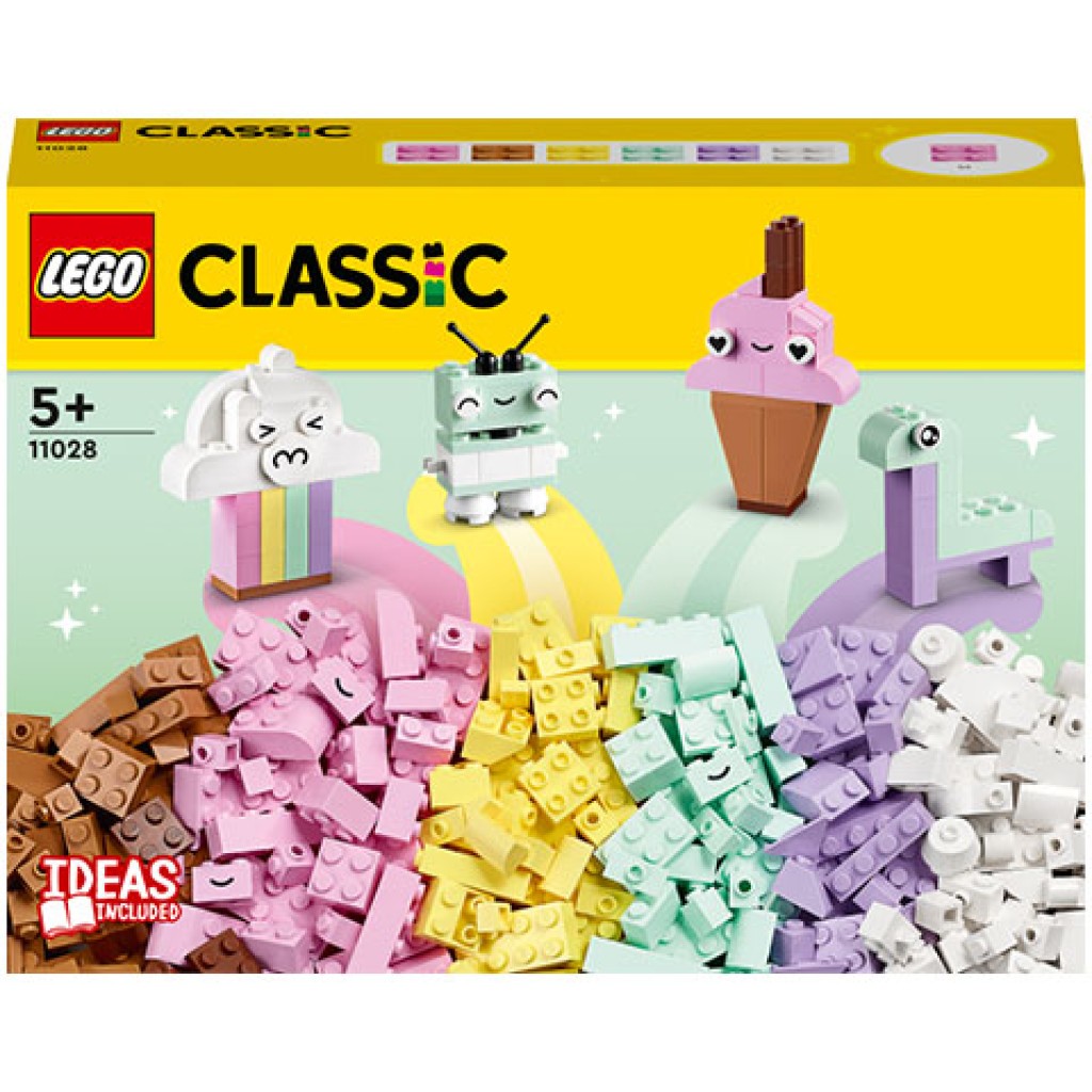 • Pasztellkockák kreatív gyerekeknek – Bátorítsd az 5 éves vagy nagyobb gyerekeket a színek és a kreativitás felfedezésére a LEGO® Classic Kreatív pasztell kockák (11028) szettel, ami pasztellárnyalatokban pompázó, szabad építést kínál