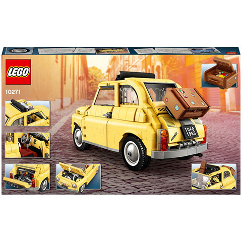 Ez a LEGO® Creator Expert Fiat 500 autómodell (10271) feleleveníti a klasszikus autótervezés valódi ikonját. A tinédzser és felnőtt rajongók örömmel fogják belevetni magukat a kihívást jelentő építési élménybe, melyet ez a 60-as évek Fiat 500F legendája alapján készült modellkészlet nyújt. A rajongókra olyan valódi LEGO kockákból kialakított részletek várnak, mint a bőrönddel ellátott csomagtartó, a részletesen kialakított belső tér, valamint a nyitható tető, ajtók, motorháztető és hátsó ajtó. Hogy teljes legyen az olasz hangulat, ez a klasszikus autómodell egy összecsukható festőállványt is tartalmaz ecsettel, palettával és a híres római Colosseum előtt álló autóról készült kis „festménnyel“.
