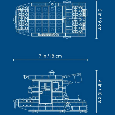 - A lakóhajó mérete 10 x 17 x 8 cm