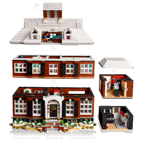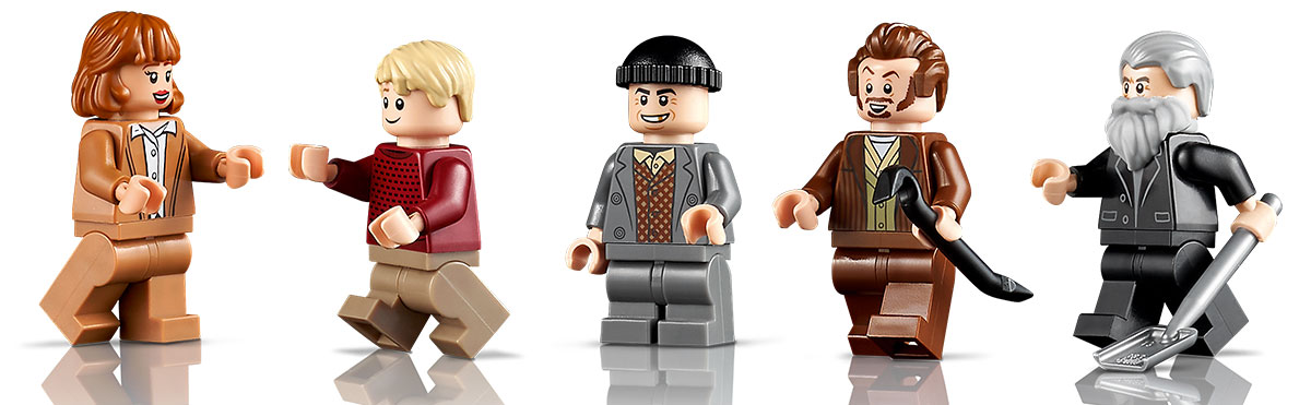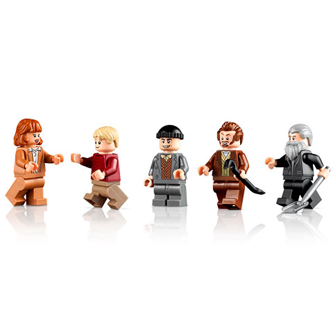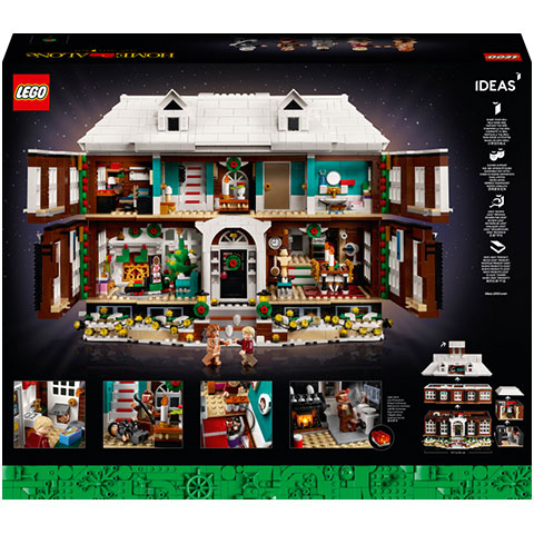A készlet tartalmazza Kevin McCallister, az anyukája, Kate McCallister, a bűnöző Harry és Marv, valamint a „hólapátos” Marley 5 LEGO minifiguráját. Emellett Harry és Marv furgonjában feszítővasat és rendőrsapka elemeket is találsz. A 3957 elemével ez az eddigi legnagyobb LEGO Ideas készlet, amelynek kockái különálló csomagban vannak elosztva a film cselekményét követve, így az ünnepek alatt az építés során újra átélheted a történetet.