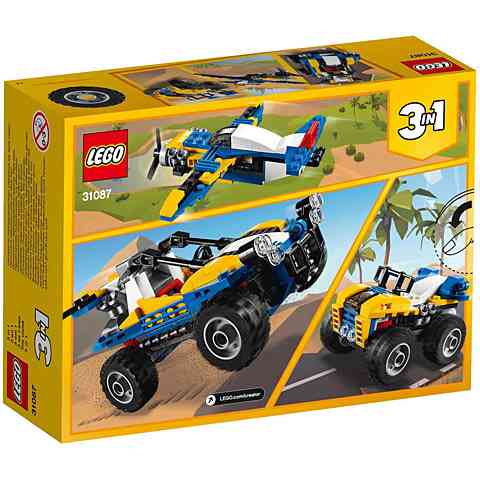 - A szett része a LEGO® Creator 3 az 1-ben szett: Terepjáró homokfutó átépíthető repülőgéppé vagy quad járművé is