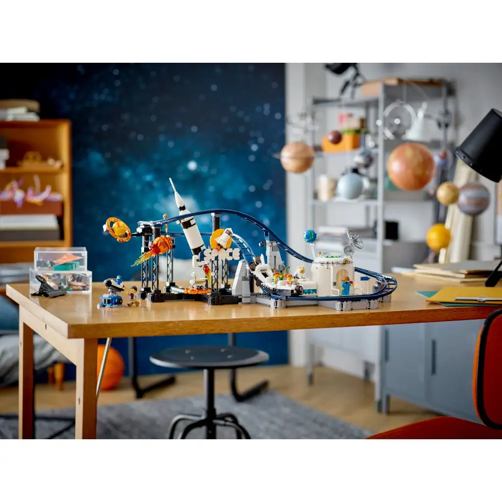 A 9+ éves űrrajongók lenyűgöző utazást tehetnek egy vidámparkban a részletgazdag LEGO® Creator 3 az 1-ben Űrhajós hullámvasút (31142) szettel. A játékkészlet tartalmaz egy kanyargós hullámvasutat és 3 mozgó kocsit a vidám körökért, amelyek elsuhannak egy mutatós űrrakéta, a Szaturnusz és a Föld modelljei, egy holdbázis és egy hullócsillag mellett. Van hozzá egy szuper meteor is világító kockával és 5 minifigura.