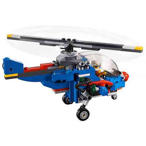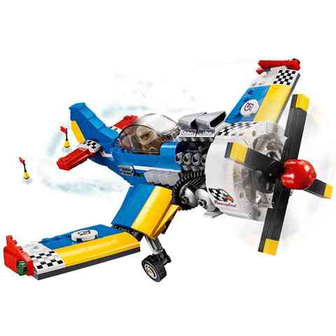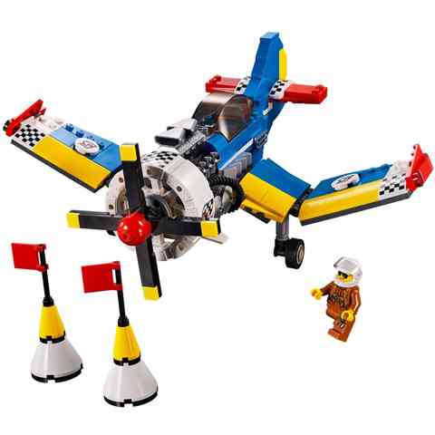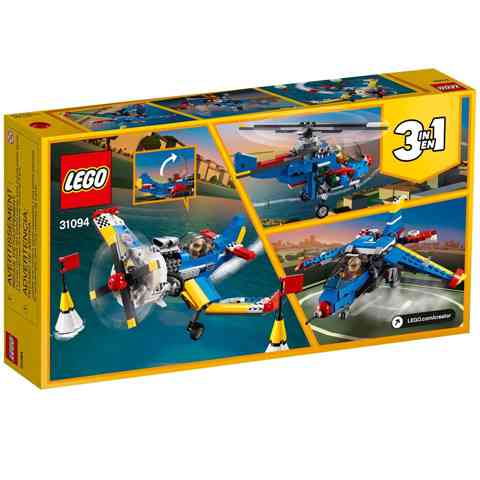 Ez a több mint háromszáz darabos LEGO Creator 3 az 1-ben készlet a legvagányabb repülő járművel összerakását teszi lehetővé. A Versenyrepülőgép kék, fehér, sárga és piros színekben pompázik, melyet versenymatricák, hatalmas, részletesen kidolgozott, kipufogócsövekkel és hengerekkel ellátott motor, rögzített futómű, nagy propeller és csuklós szárnyak egészítenek ki, hogy igazi, szélsebes kinézetet kapjon! Nyisd fel a színezett tetőt, hogy hozzáférj a repülőgép pilótafülkéjéhez, valamint hogy beállíthasd a farok kormányokat, majd szállj az ég felé, és mutass be lenyűgöző, villámgyors manővereket! Ha végeztél, alakítsd át ezt a klassz propelleres repülőt egy szuper-erős Helikopterré, vagy mutass be függőleges felszállásokat és szuperszonikus manővereket a kompakt kialakítású, Sugárhajtású repülőgép fedélzetén!
