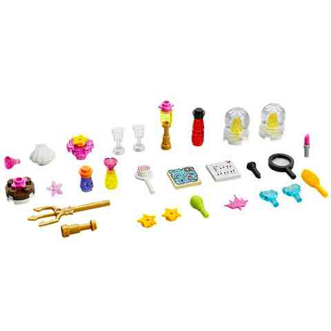 - A tartozékok között szerepel egy mikrofont, zongorát, háromágú szigonyt, térképet, nagyítót, rúzst, hajkefét, tortát, nyalókát, poharakat, korallt, tengeri fűvet, kagylót és dekorációs matricákat