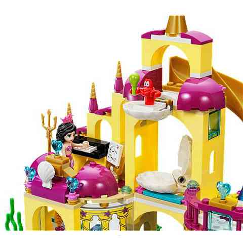Indulj egyenesen a mélybe hihetetlen, víz alatti kalandokra Ariellel, testvérével Alanával és barátaival Sebastiannal és Flounderrel. Segíts Arielnek és Alanának felkészülni a koncertre az öltözőasztallal és kanapéval felszerelt öltözőjükben. Utána pedig mutass be egy remek előadást a csapattal együtt! Használd a zongorát, a rumbatököket és a mikrofont! Csodáld meg Arielnek az emberek világából származó, apró holmikból álló gyűjteményét az ő titkos barlangjában, és játszadozz a hullámokon Flounderrel és egy barátságos delfinnel. Csatlakozz Arielhez és barátaihoz, és egyetek különböző finomságokat. Ha pedig vége a napnak, csúsztasd le egy csúszdán a csapóajtón át, egyenesen a saját gyöngykagyló ágyába. Csak rajtad múlik! Először építsd meg vidáman Ariel víz alatti palotáját. Utána készen állsz a játékra! A készletben Ariel és Alana mini babafigurákat, plusz Sebastiant a rákot, Floundert a halat és egy delfint találsz.