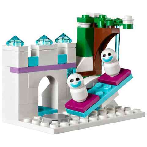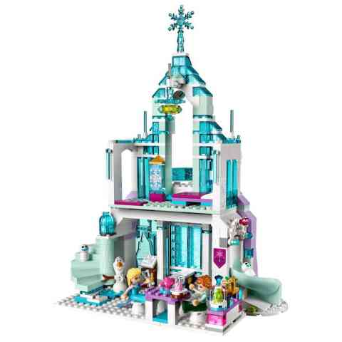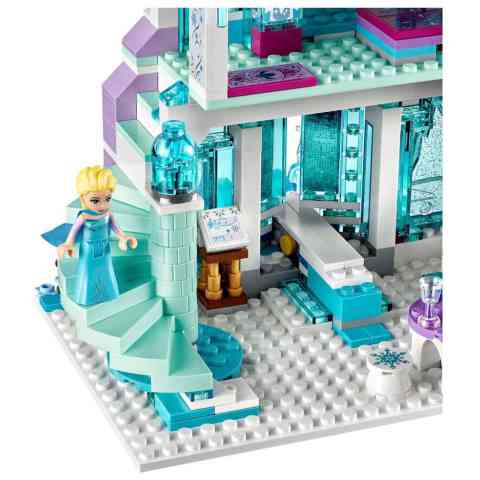 Építsd meg Elsa varázslatos jégpalotáját, mely számtalan izgalmat tartogat a számodra! A szettben megtalálod a Jégvarázs mese három főszereplőjét; Annát, Els-t és Olafot. A palota két szinten tartogat számodra remek játékélményt. Az alsó szinten a pihenő van padokkal és asztallal, míg a második szinten Elsa hálószobája. A palotában csigalépcső és csúszda is helyet kapott. A szett számtalan csillogó-áttetsző elemet tartalmaz, melyek valóban jeges hatást kölcsönöznek a kész épületnek.