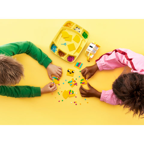 • Számtalan design lehetőséget hordozó felület – Ez a szett tökéletes a gyerekek végtelen kreativitásának kifejezéséhez. A LEGO® DOTS Extra DOTS – 6. sorozat csomaggal (külön kapható) tetszésük szerint bővíthetik ki a designjaikat