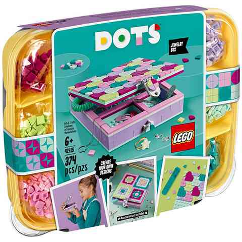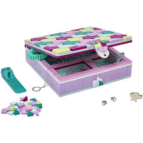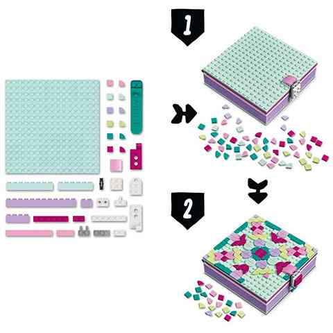 A gyermekek örömmel fogják feldíszíteni és használni ezt a LEGO Ékszerdoboz készletet! Az egyszerű és intuitív csináld-magad szobakiegészítő készlet lehetőséget nyújt a gyermekek számára, hogy saját, aranyos ékszertartót alkossanak, melyet úgy alakítgathatnak, hogy passzoljon a hangulatukhoz vagy a szobájukhoz. A mellékelt tárolónak és tárolótálcának köszönhetően az összepakolás és a rendszerezés is gyerekjáték lesz. Az ékszerdoboz-játék mozgatható elválasztókat tartalmaz, ahol az ékszereket vagy bármilyen LEGO DOTS kiegészítőket lehet tárolni. Egy zár is van rajta, hogy a gyermekek biztonságban tarthassák titkaikat.