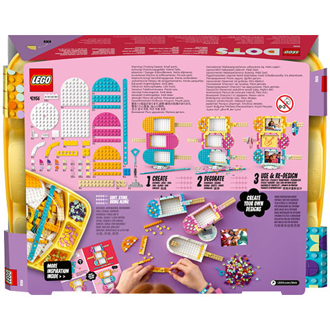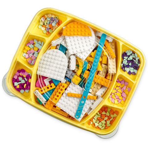 • Tálcán kínált kreativitás – Ez a készlet önmagában is fantáziadús elfoglaltságot nyújt, de a gyerekek akár aLEGO® DOTS Extra DOTS csomagokkal vagy dobozokkal (külön kaphatók) is kibővíthetik designjaikat