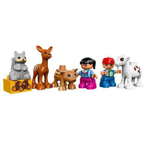 - Tartalmaz 2 gyermek LEGO® DUPLO® figurát, egy mókust, őzet, vaddisznót és egy kecskét