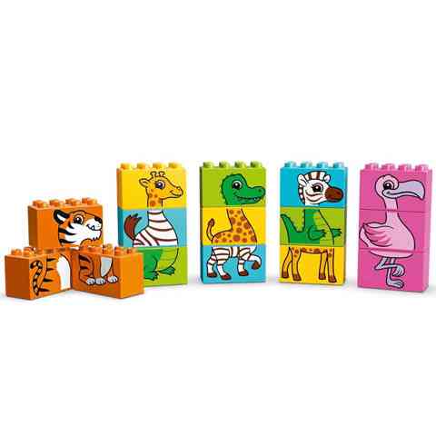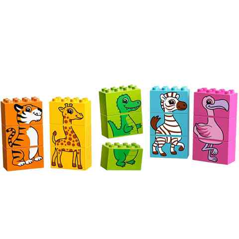- A szett része 5 építhető LEGO® DUPLO® puzzle: flamingó, zebra, zsiráf, krokodil és tigris