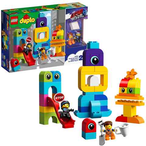Vezesd be gyermeked a kreatív építés világába a LEGO® DUPLO® készlettel! Emmet, Lucy és barátaik kalandjai a LEGO® Movie 2-ben folytatódnak, ahol az első filmhez hasonló izgalmakat élhetnek át a kicsik a megszokott mókás köntösben. A szettben a két főszereplő figurán kívül két alien is feltűnik, melyeket a színes elemekből építhetnek meg a gyerekek. A kicsik kreativitását remekül próbára teszi és fejleszti a LEGO® DUPLO® játék, mellyel izgalmas játékélményben lesz részük.