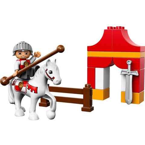 A lovagot a lándzsájával és kardjával együtt ültetheted fel a lovára, így máris részese lehetsz a középkori lovagi tornának. A szettben megtalálható egy akadály amit a paripával ugorhatsz át, a sátorban pedig a lovag pihenhet meg a küzdelmek között. Segíts a kis lovagnak és légy részese az elképesztő Lego Duplo kalandnak!