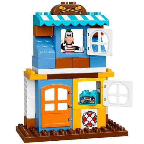 Donald kacsa egy pillanat alatt bepattan a versenycsónakba, hogy jól meghuzassa Goofyt aki a wakeboard nagy mestere. Eközben Mickey egér a kamerájával megörökíti a nem mindennapi eseményt a tengerparti házának teraszáról. A Disney rajongó gyerekek örömmel fogják megépíteni és átépíteni ezt a vidám tengerparti házat, és élvezettel találnak ki különféle izgalmas történeteket a mesefigurák számára. A LEGO® DUPLO® elemeket kifejezetten az apró kezek számára fejlesztették, hogy szórakoztatóak és biztonságosak legyenek a kicsik számára.