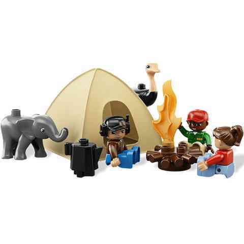 - Kiegészítők: sátor, tűzrakóhely, fa, híd, és Lego Duplo kockák.