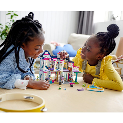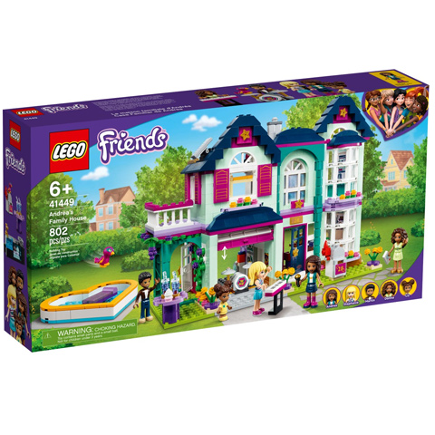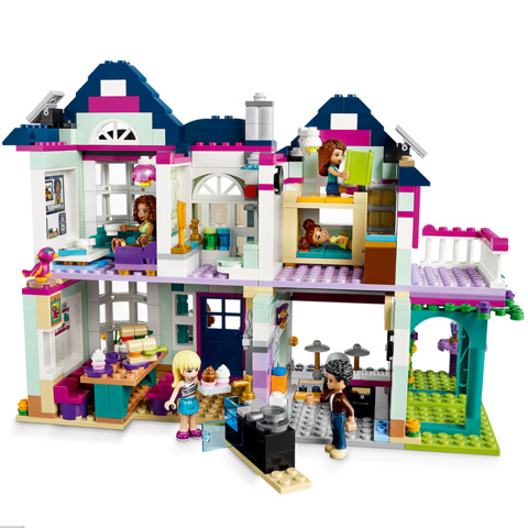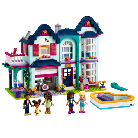 Andrea és családja Heartlake cityben élnek, egy hatalmas házban, ahol minden megtalálható, ami csak kellhet egy házba. Több szoba, fürdőszoba, nappali, erkély, konyha és egy kis terasz is megtalálható benne, ahol mindenki megtalálja a számára legjobb időtöltést. A garázs felnyitható ajtót kapott, benne pedig egy zenei kis kuckót találhatunk, ahol a család együtt zenélhet majd, és akár egy házibulit is tarthatnak, amihez egy szív alakú medence is van a szettben. Ezen kívül több kiegészítő is megtalálható benne, melyekkel a játék végtelen lehetőséget nyújt gyermekednek. A házat 802 építőelemből lehet felállítani, mely türelmet igényel majd, ám biztosan megéri. Ezek a darabkák kiváló minőségű anyagból készültek, tökéletes illeszkedéssel, aminek köszönhetően könnyen egymásba illeszthetők, mégis stabilak.