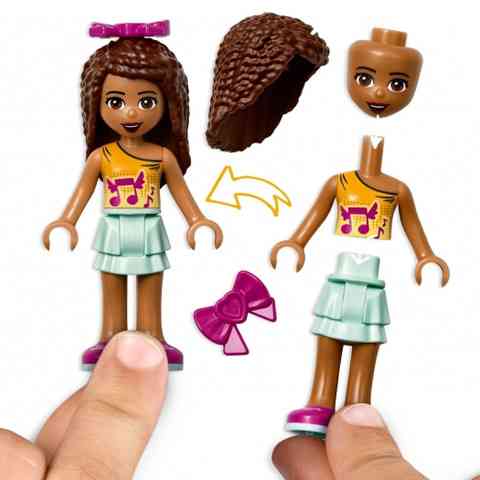 Ismerkedj meg Andreával akinek most a hálószobájába is bepillanthatsz, ahol elég sok dologra fény derül. Például megtudhatod, hogy Andrea nagyon szereti a zenét, és remekül játszik gitáron, zongorán és nagyon szépen énekel Pepper a kis papagáj legnagyobb örömére. A LEGO Friends készletekkel egy varázslatos utazás lehetősége nyílik meg és a gyerekek megismerhetik a csodás Heartlake City lakóit, és legnépszerűbb helyeit, és ez a város megannyi kaland helyszíne lehet, melynek szó szerint csak a gyermeki képzelet szab határt.