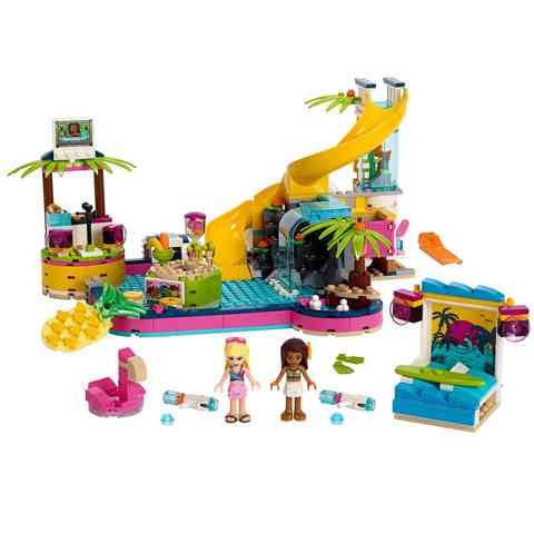 A nyár legjobb része, amikor medencézhetünk, napozhatunk a parton és ez Heartlake Cityben sincs máshogy. Andrea egy hatalmas bulit rendezett barátnőinek, akikkel együtt pancsolnak, hűs üdítőket kortyolgatnak és még szörfözni is megtanulhatnak. A szettben továbbá még DJ pult is van, hiszen zene nélkül nem is lenne igazi a medencés buli. Gyermeked ezt a medencét összesen 468 elemből tudja megépíteni, és megéri majd, hiszen hatalmas szórakozás vár rá Andreaával és Stephanie-val.