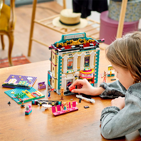 • Telt házas játék – Nyűgözd le a kis színészeket a LEGO® Friends Andrea színiiskolája (41714) készlettel, ami egy hatalmas színházat tartalmaz, ahol a színművészetért rajongó gyerekek kiélhetik a dráma iránti szenvedélyüket