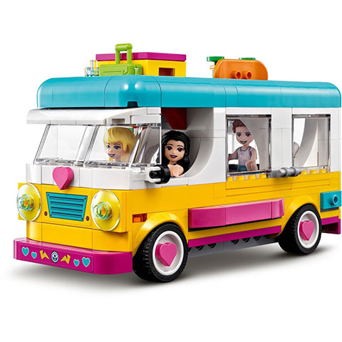 A gyermekek felfedezhetik a színes és részletgazdag lakóautót, aminek a tetején egy kiegészítőkkel teli doboz vár rájuk, amit kipakolhatnak. Az elülső tető levehető, így a fiatalok könnyedén hozzáférhetnek a vezetőfülkéhez, a főtető pedig csuklópántos kialakítással készült, így egyszerűen kivehetik a hálózsákokat a szabadtéri kempingezéshez. A LEGO hajó tartalmaz egy kormánylapátot és mozgatható vitorlát a valósághű vitorlás kalandokhoz, emellett pedig egy szép, tavi és hegyi helyszín is vár rájuk, ahol leparkolhatnak, és felfedezhetik a vidéket. A fiatalok mindemellett még egy mosómedvével is összebarátkozhatnak.
