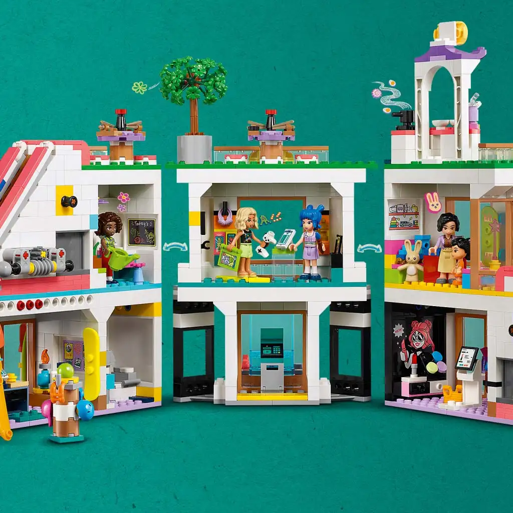 Rengeteg felfedeznivaló várja a gyerekeket, miközben összerakják a bevásárlóközpont 3 emeletét az üzletekkel, ahol szépségápolási termékeket, játékokat, videójátékokat, virágot és szabadtéri felszereléseket árulnak. De az építés csak a kezdet! Az építőszettnek rengeteg olyan tulajdonsága van, amely táplálja a barátsághoz kapcsolódó történeteket, miközben a gyerekek segítik a szereplőket abban, hogy felfedezzék az üzleteket és kiválasszák a nekik leginkább tetsző dolgokat.