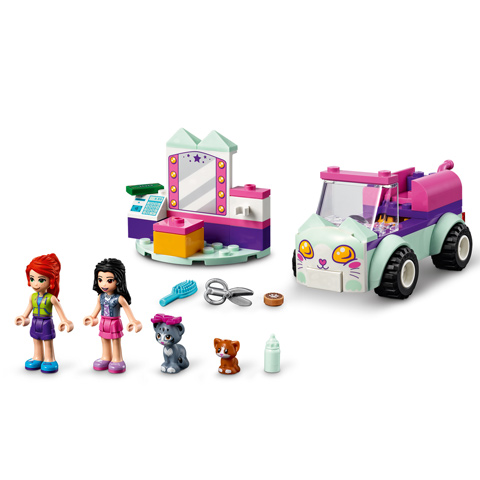 A LEGO Friends egy különleges világba repíti a kicsiket, ahol rengeteg mókás és érdekes dologfal találkozhatnak. ebben a szettben most egy csajos macskaápoló autó található meg, melyben minden megtalálható, ami egy macskakozmetikához kellhet. A szettben az autón kívül még egy mini kozmetikai asztal is található, valamin fésű, olló és egy cumisüveg, valamint két cica is. Persze a LEGO Friends figurák sem maradhattak ki belőle, akik Mia és Emma, ők pedig legjobb barátnőkhöz híven rengeteget mókáznak. Gyermeked összesen 60 építőelemet talál majd a szettben, mely remek kiegészítője is lehet akár a már meglévő szettjeinek is.
