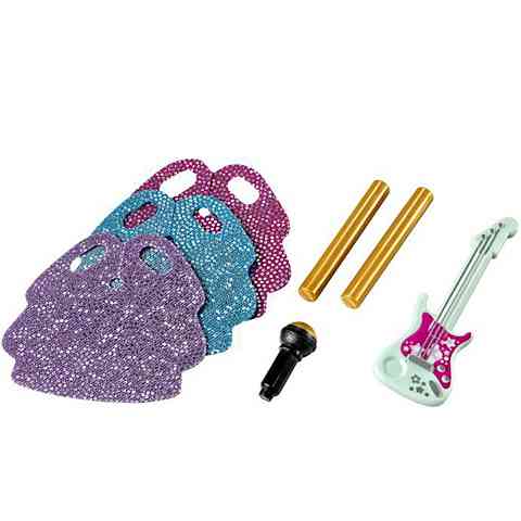 - Kiegészítők: szoknyák, mikrofon, dobverők, gitár