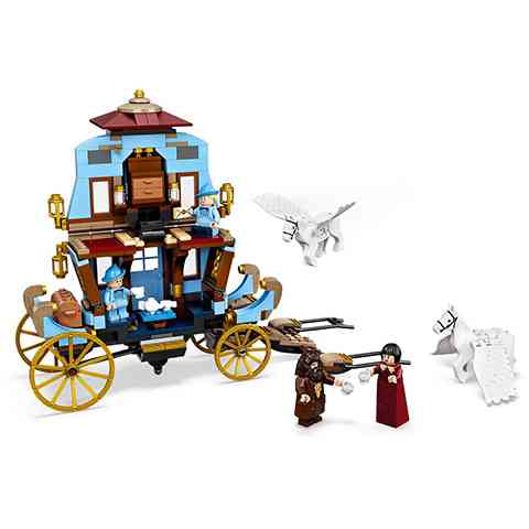 Roxfortban hatalmas a készülődés, hiszen ott kerül megrendezésre a Trimágus kupa. A Beauxbatons mágusakadémia szárnyas hintója már látható is az égen! Hagrid segítségével a földet érés sokkal biztonságosabb. Landolás után át lehet alakítani a kocsit egy 2-emeletes hálószobává teázóval, ahol a gyerekek csatlakozhatnak Madame Maxime, Fleur Delacour és Gabrielle Delacour társaságához. Utána pedig Hagrid segítségére lehetnek a pegazusok etetésében és elszállásolásában! A készletben megtalálható hintó és szereplők a Harry Potter és a Tűz Serlege epizódból lehet ismerős, aminek a segítségével a gyerekek felidézhetik a filmek és a könyvek legizgalmasabb jeleneteit.