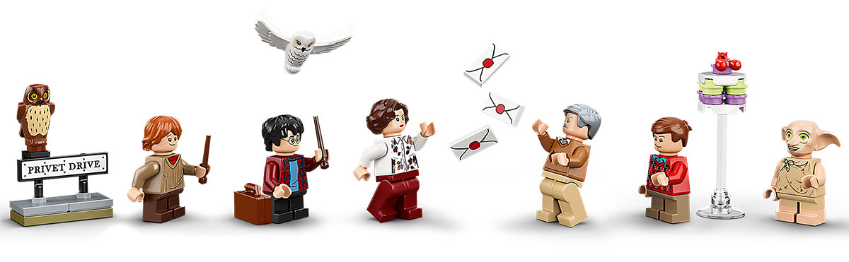 A Harry Potter-rajongóknak végtelen mókában lesz részük Harry, Ron Weasley, Dudley Dursley, Vernon Dursley, Petunia Dursley és Dobby minifiguráival. Átadhatják magukat a fantáziadús játéknak a teljesen felszerelt, 2 emeletes házban, mely tartalmazza Harry titkos gardróbját a lépcső alatt, emellett beindíthatják a roxforti felvételi levelek áradatát a levélnyíláson keresztül.
