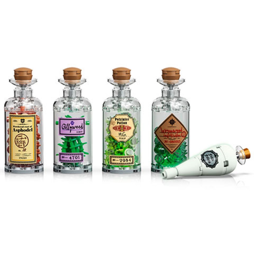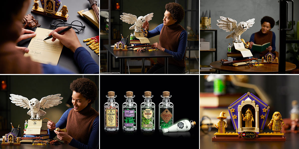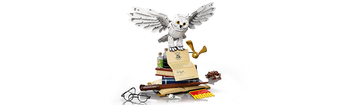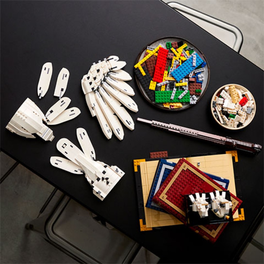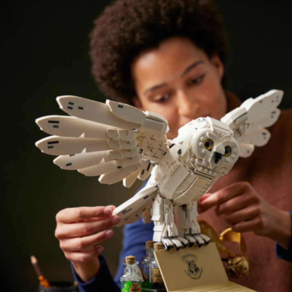 A Harry Potter varázsvilága előtt hódoló készlet számos ikonikus emléktárgyat tartalmaz egyetlen bámulatos modellben. Megtalálod Harry pálcáját és szemüvegét, Ron csokibékáját, Hermione bájitalos tálcáját, rajta 5 üveg bájitallal és varázslatos összetevőkkel (köztük varangydudvával, Felix Felicis „folyékony szerencse” bájitallal és százfűlé-főzettel), Tom Denem naplóját, az aranycikeszt, valamint egy iskolai sálat is (ami bármelyik roxforti házhoz alakítható). Az elbűvölő építmény tetején Hedvig ül, miközben egy áhítozott roxforti meghívót tart magánál. Ez a bámulatos modell 3 exkluzív aranyszínű minifigurát is tartalmaz – Albus Dumbledore™-t, Minerva McGalagony™-t és Rubeus Hagrid™-ot –, valamint egy díszített csempével ellátott bemutatóállványt a LEGO Harry Potter elmúlt 20 évének megünnepléséhez.