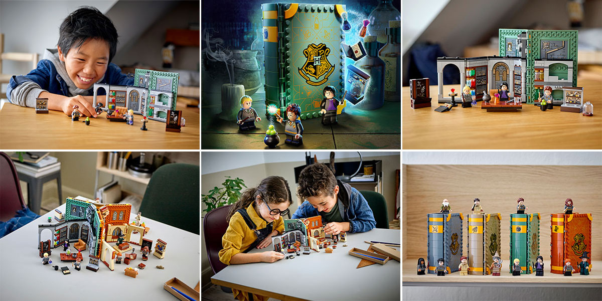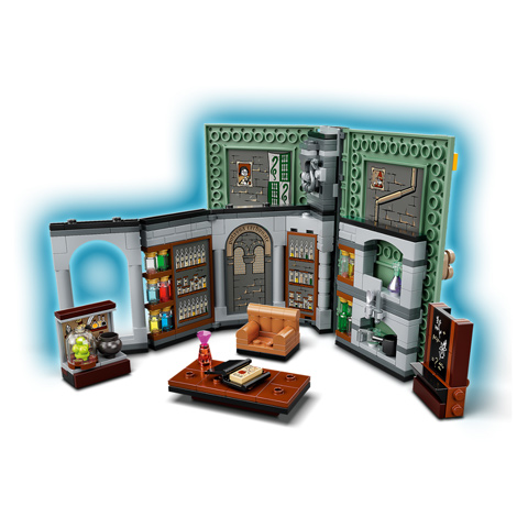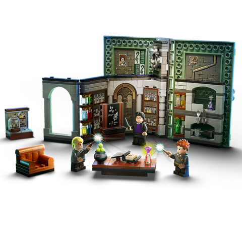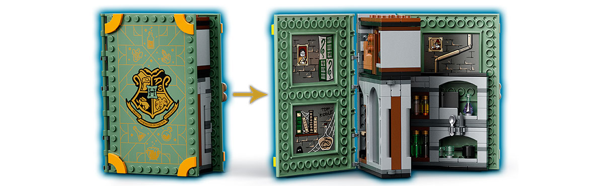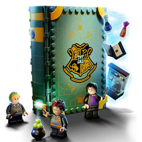 • A LEGO Harry Potter Roxfort pillanatai: Bájitaltan óra egy kockákból épült játékkönyv, amit kihajtva felfedezheted a Harry Potter filmekből ismert bájitaltan óra alagsori tantermét.