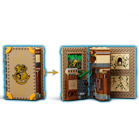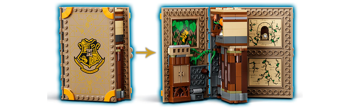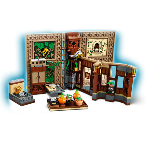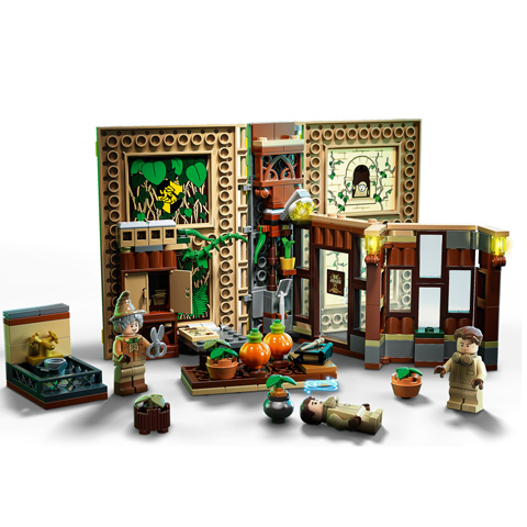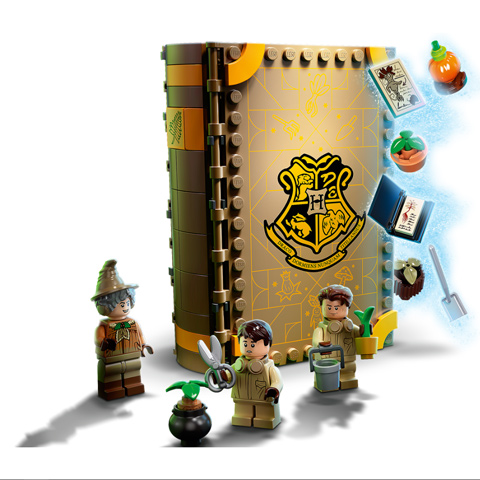 • A LEGO Harry Potter Roxfort pillanatai: Gyógynövénytanóra egy kockákból épült játékkönyv, amit kinyitva és kihajtva felfedezheted a roxforti üvegházat, ahol éppen egy gyógynövénytanóra zajlik.