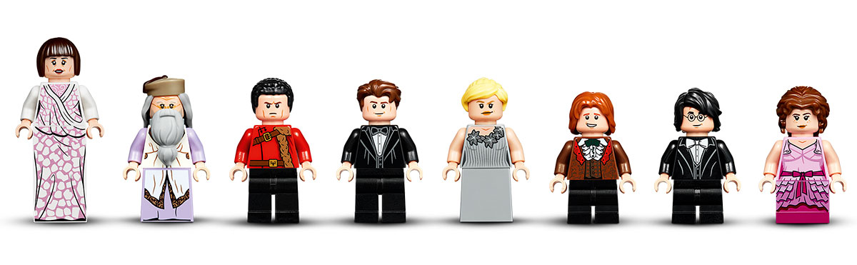 • A csomagban 8 új, 2019 júniusában megjelenő Harry Potter minifigurát találsz: Harry Pottert, Ron Weasley-t, Hermione Grangert, Fleur Delacourt, Cedric Diggory-t, Viktor Krumot, Albus Dumbledore-t és Madame Maximot.