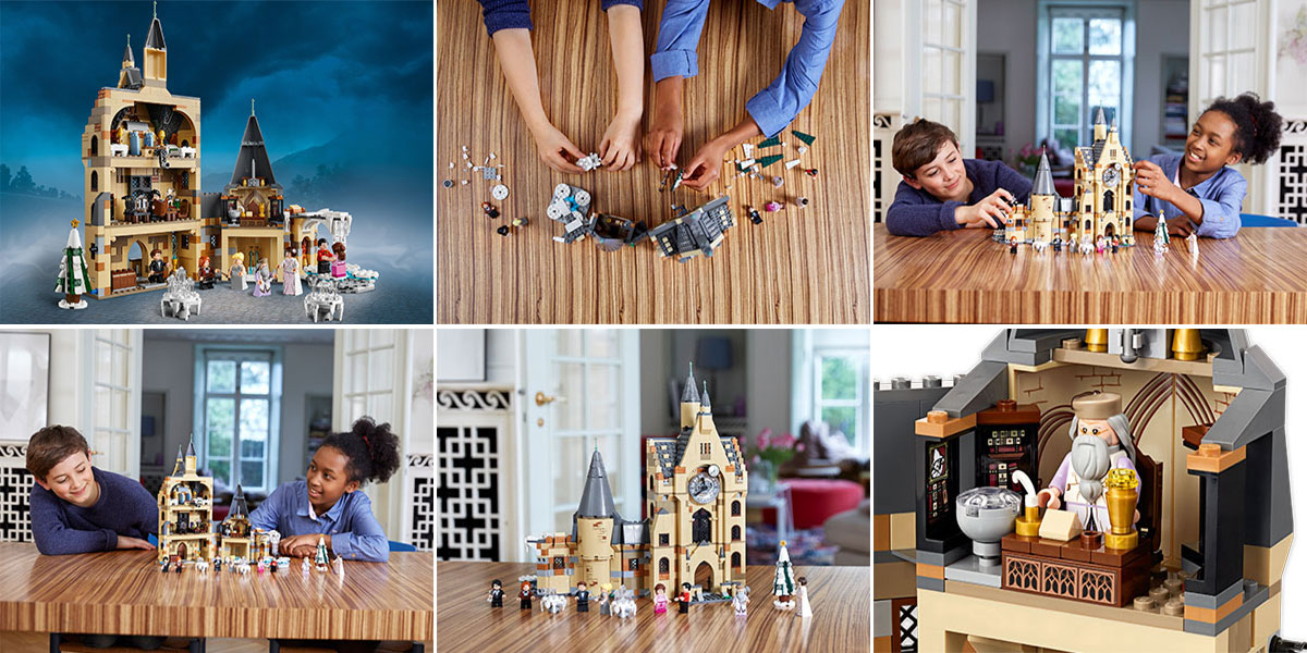 • Ez a Harry Potter LEGO játékkészlet tartalmazza a 3-szintes roxforti óratornyot, a bejárati csarnokot, a sötét varázslatok kivédése tantermet, a gyengélkedőt, a prefektusi fürdőt, Dumbledore irodáját és a karácsonyi bál jeges díszeit.