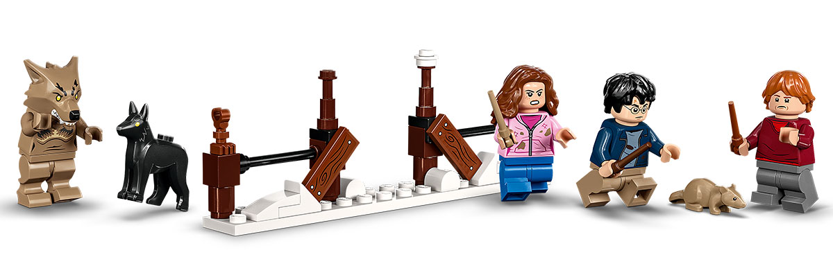 • Ikonikus minifigurák – Harry Potter™, Hermione Granger™, Ron Weasley™, Sirius Black™, Peter Pettigrew és Remus Lupin. A gyerekek emellett 4 gyűjthető, random varázslókártya-csempét is kapnak (a 16-ból)
