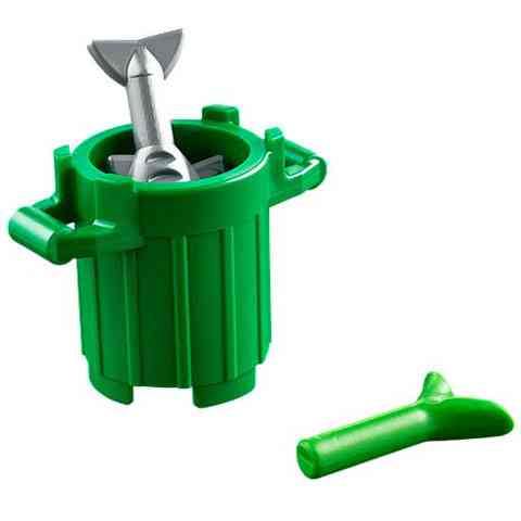 - A tartozékok között található egy kézikocsi, egy seprű és a szemetes