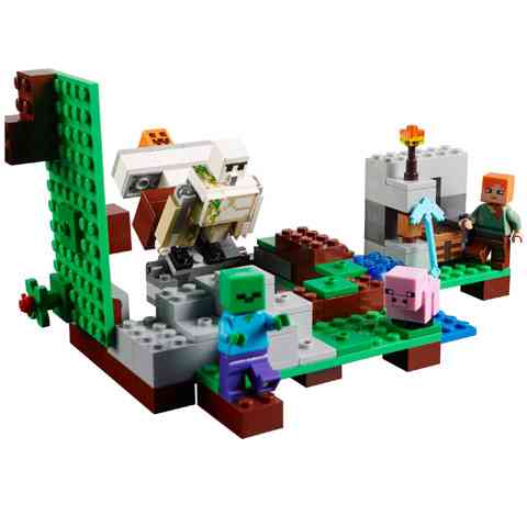 Hamarosan lemegy a nap és beköszönt a sötét éjszaka és akkor előmerészkednek a modok is. Valahogy meg kell védened magadat és a kismalacot is! Bányásznod kell egy kis vasércet a gyémántcsákányoddal, amiket aztán vasrudakká olvaszthatsz a kohóban, hogy vastömböket készíthess a barkácsasztal felhasználásával! Innen pedig már csak egyetlen lépés egy vasgólem készítése amivel meglepetésszerű támadást indíthatsz a kóborló zombik ellen! Fedezd fel a Minecraft csodás világát a valóságban is a LEGO® kockák segítségével.