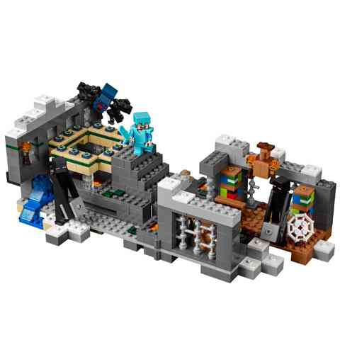 A nagy nehezen megszerzett bevégző szeme egy havas hegyvidéken vezetett át téged egészen egy titkos erődhöz. Nem árt, ha felveszed a gyémánt páncélodat és megragadod a gyémánt kardodat és ugyancsak óvatosan haladsz előre a balsejtelmes helyen! A fáklyával megvilágított pókhálós könyvtárban talán találsz valami érdekeset, de ehhez meg kell küzdened az ijesztő barlangi pókkal. Ha megszerezted a gyémántokat, vöröskövet és vasrudat rejtő ládát, akkor már csak a bevégzőket kell legyőznöd és aktiválhatod a végzetportált! Fedezd fel a Minecraft csodás világát a valóságban is a LEGO® kockák segítségével.