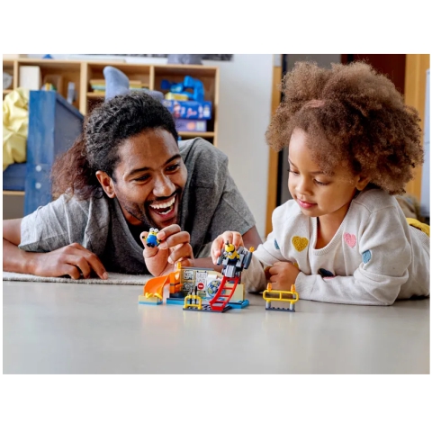 - A rengeteg szórakoztató funkciónak köszönhetően a játékkészlet tökéletes a kreatív mókához. A gyermekek lecsúszhatnak a minyonokkal a pincébe, letesztelhetik az autót a rámpán, vagy a mosógép hátulján lévő ravasszal megforgathatják azt.