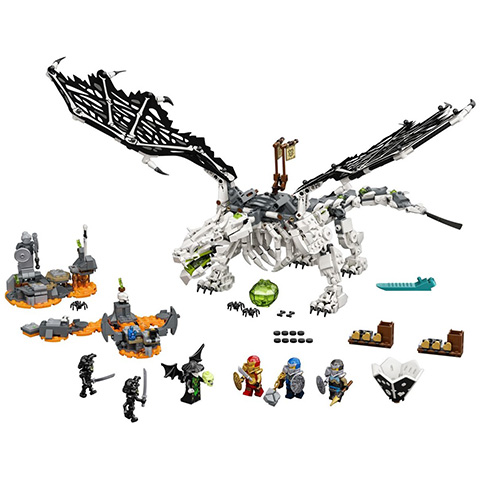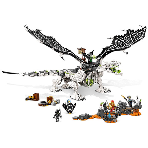 A legnagyobb Ninjago rajongók megépíthetik a koponyavarázsló sárkányát és természetesen játszhatnak is vele. Ebben a sárkányépítő készletben hat összerakható figura található ami a lebilincselő, kreatív játékhoz megfelelő lehetőséget. A gyermekek élvezhetik majd az akciódús szerepjátékot, amint a nindzsák megküzdenek a koponyavarázslóval, az ő sárkányával és csontvázharcosaival, hogy kiszabadítsák magukat Shintaro kísérteties tömlöceiből. Ez a varázslatos játékkészlet a társasjáték kalandokhoz is használható, amely egy nindzsa kockapörgetővel és egy támadópályával büszkélkedhet, amelyen a nindzsáknak el kell kerülniük egy csapdát. A gyermekek megpörgetik a kockát, és kigondolják, milyen úton haladjanak a játékban, hogy megszerezzék az értékes Megszabadítás Elefántcsontpengéjét. Más LEGO készletekkel is kombinálható, hogy egy óriási társasjátékot hozzunk létre. Lenyűgöző építőkészletek gyermekeknek, hiszen a LEGO Ninjago készletekkel a fantáziadús fiatalok elmenekülhetnek egy titokzatos világba, ahol nindzsahősökként eljátszhatnak történeteket, és felvehetik a harcot a gonosz erőkkel. A gyerekek több órányi szórakoztató szerepjátékban merülhetnek el sárkányok, autók, repülőgépek és egyebek társaságában.